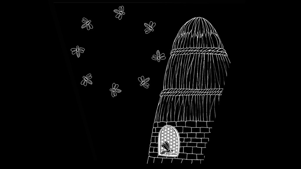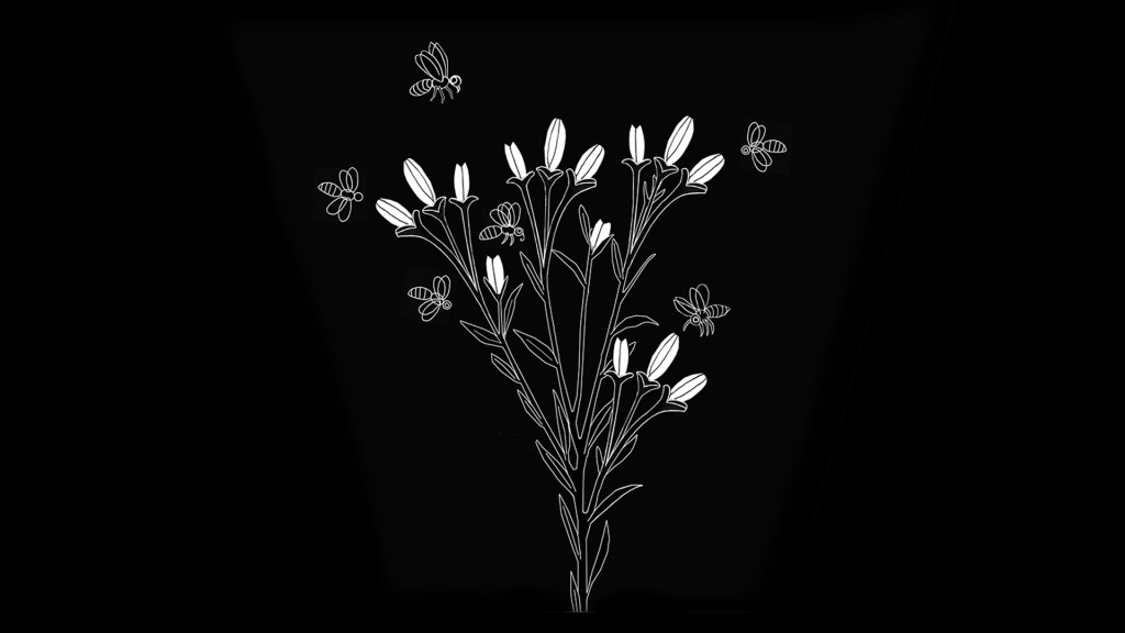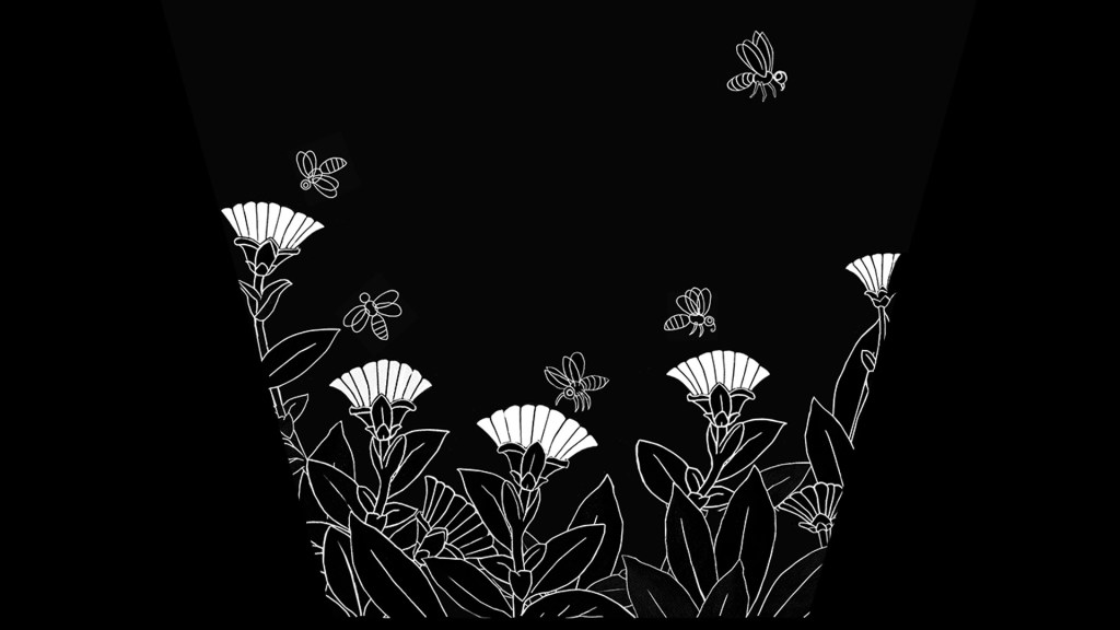 The pollinator spectrum in 2020 is rich, but there are no bee visitors in the garden. The climate of Finland is still too cool for wild bee populations and there are no beekeepers around this area. The insects showing up in the videos are wild insect pollinators. However, it is the imaginative bee that we are following meanwhile listening to the bee related literature from the distant past to the present day.